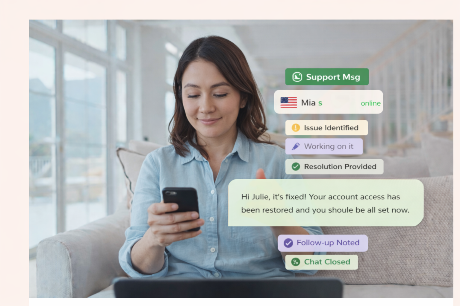 A smart system that handles customer support across WhatsApp, Voice, Email, and SMS. Automatically resolve issues and answer questions on the channels your customers use.